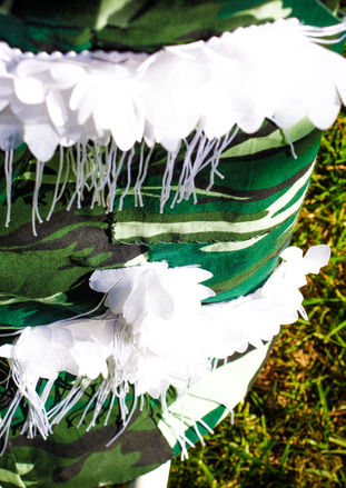 and died. We all know that humans make war, but even in that situation, the flowers of hope bloom. I wanted to focus on the raw energy of blooming flowers and open a window to the turbulent inner world of war by contrasting work that candidly depicts a spirit of explosion like love, courage or angerIn this collection, I used vitality and chaos to express the power of the message. I used graphite pencils to create the main figures and altered the images using various graphic design programs to convey this concept.